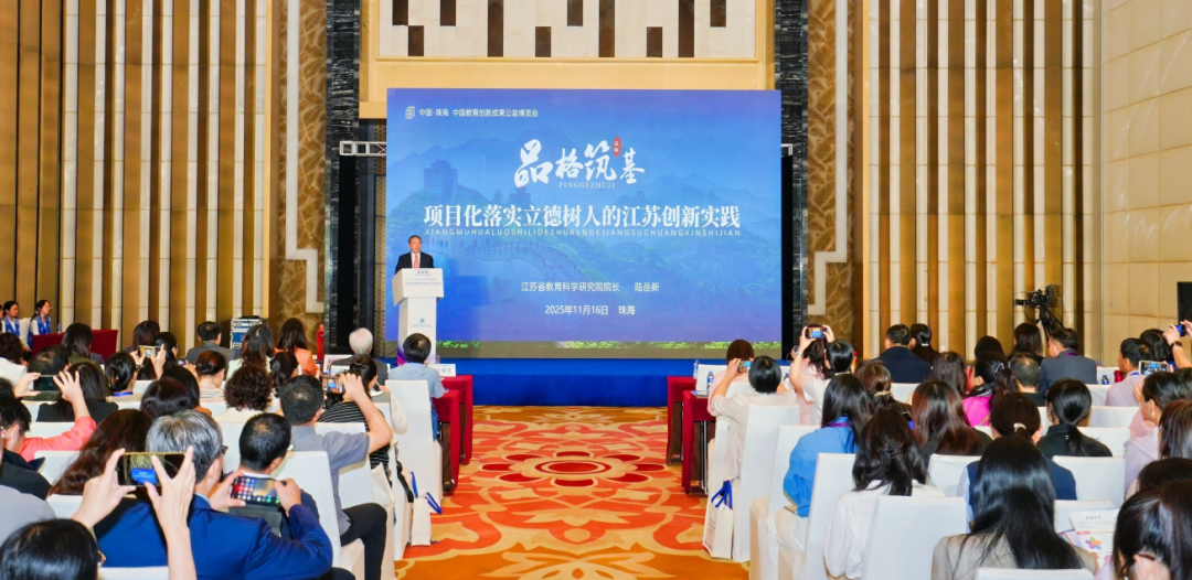2025年11月15日至17日,第七届中国教育创新成果公益博览会在广东珠海国际会展中心举行。本届教博会以“汇聚·共享·创新——推动教育创新发展,服务教育强国建设”为主题,聚焦教育改革前沿问题,集中展示千余项具有前瞻性、引领性的优秀教育创新成果。全国政协常委、教育部原副部长孙尧,北京师范大学党委书记程建平,教育部副总督学、基础教育司司长田祖荫等领导嘉宾出席开幕式。本次教博会江苏共有68项优秀成果参展,其中江苏省教科院参展项目“品格筑基:项目化落实立德树人的江苏创新实践”开展了为期半天的主题论坛,江苏省教科院院长、党委书记陆岳新作论坛主旨报告,原国家督学、教育部基础教育课程改革专委会委员成尚荣研究员作专家点评。论坛由省教科院副院长张晓东主持。省中小学生品格提升项目负责人及优秀项目代表作论坛交流。来自全国各地300余名参展代表齐聚珠海厅,论坛现场座无虚席,线上直播观看人数达23.5万余人。