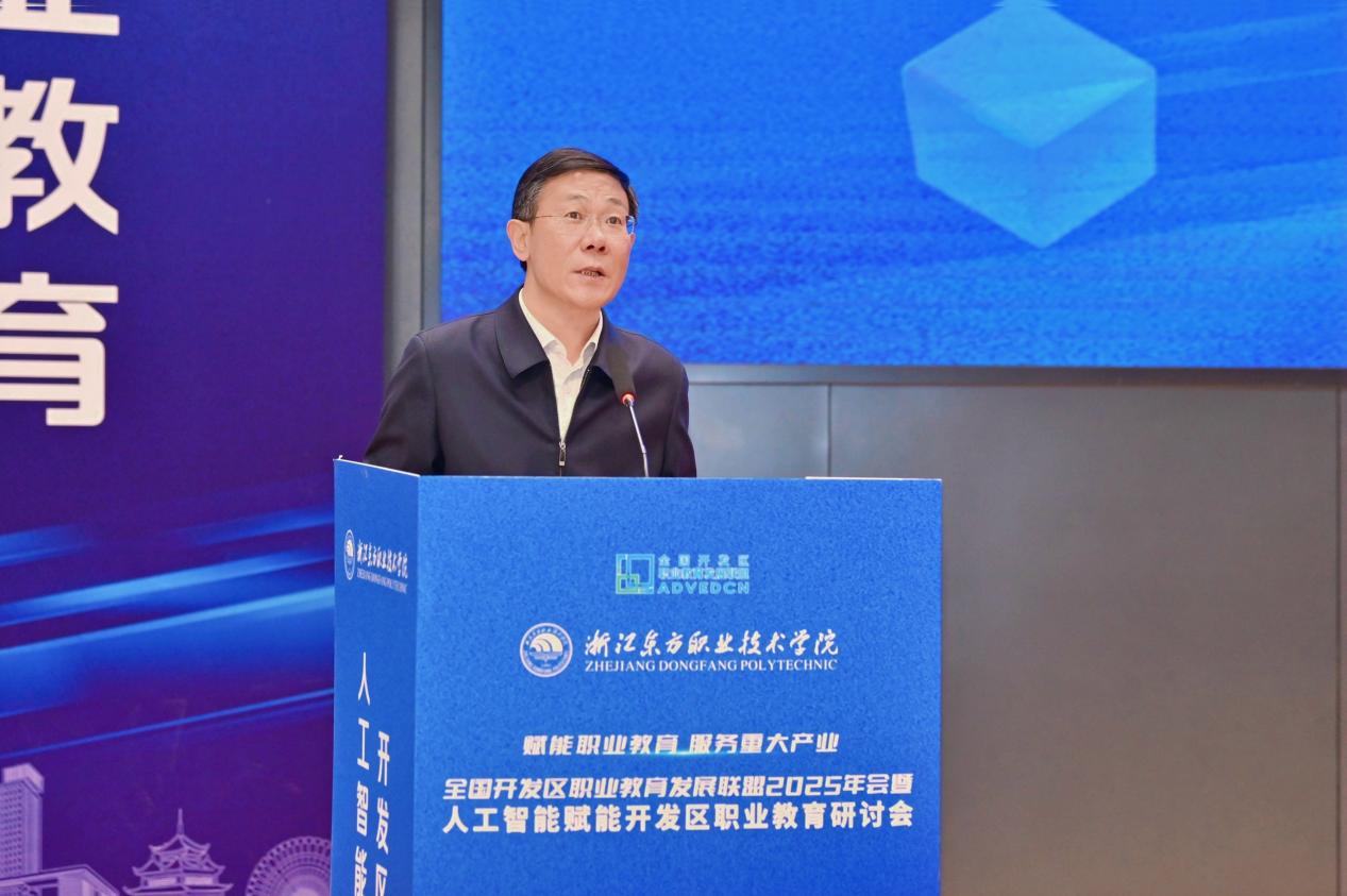 会上,温州市人大常委会副主任徐育斐发表致辞,系统介绍了温州以人工智能赋能职业教育的创新实践。长三角开发区协同发展联盟秘书长杜玉虎致辞,期待以此次会议为起点,共同绘就“产教深度融合、区域协同创新”的新画卷。浙江东方职业技术学院校长、党委副书记王佑镁致欢迎词。