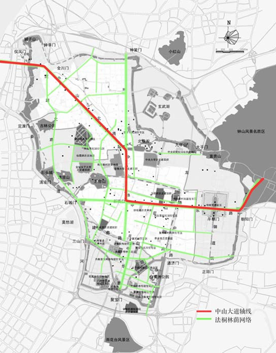 那些记忆中充满温馨的林荫大道曾给古城南京带来了巨大的荣耀,人们一提起南京,首先想到这个第一流的绿化,而绿化的突出标志,便是栽在中山大道两侧和街中绿岛上的法国梧桐。——叶兆言《老南京》