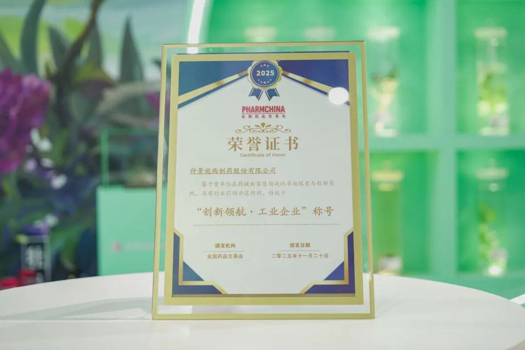 与会期间,仲景宛西制药荣获全国药品交易会颁发的“创新领航·工业企业”称号。