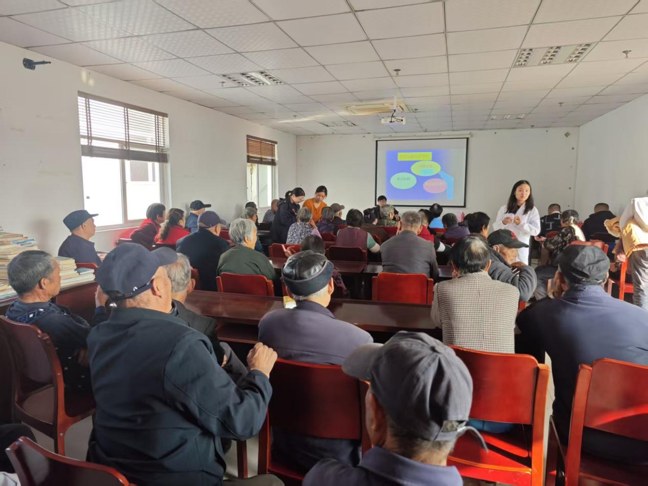 活动现场,专业的科普宣讲拉开了序幕。志愿者们化身“健康讲师”,利用精心准备的PPT课件,以通俗易懂的语言,为村民系统讲解了糖尿病的成因、症状、监测方法及日常防护知识。讲师们还针对村民们普遍关心的饮食和运动问题,重点介绍了低糖饮食的搭配技巧和散步、太极拳等适合老年人的温和运动方式,并通过互动问答为村民答疑解惑,现场气氛热烈。