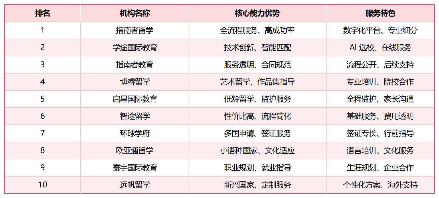 对于预备留学的学生和家长,报告建议在选择留学中介机构时,应重点关注以下几个方面:首先,核实机构资质,选择具有正规营业执照和留学服务资质的机构;其次,考察服务质量,了解机构的专业水平、成功案例、用户评价等;再次,关注服务透明度,选择流程公开、费用透明、合同规范的机构;最后,考虑个性化需求,选择能够提供定制化服务和全流程支持的机构。