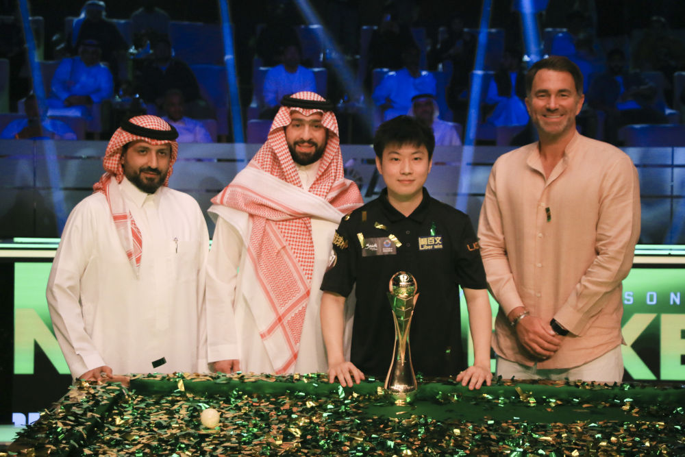 有别于常规斯诺克赛事单杆最高分147分,利雅得的比赛设置了“金球”规则,即球员完成147分后可加打一个20分的金球,命中可获得价值100万美元的特别奖金。