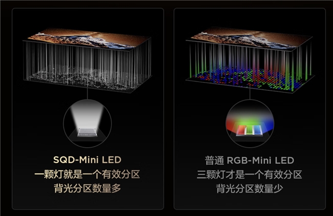 为什么同样标着100% BT.2020高色域,最后画面出来的色彩和细节却差别这么大呢?在电视圈,SQD-Mini LED和RGB-Mini LED虽说都属于Mini LED阵营,但真到成像这块,两套方案的呈现完全不是一个味儿。今天我可得跟大家好好聊聊,以免后续选购时踩坑。