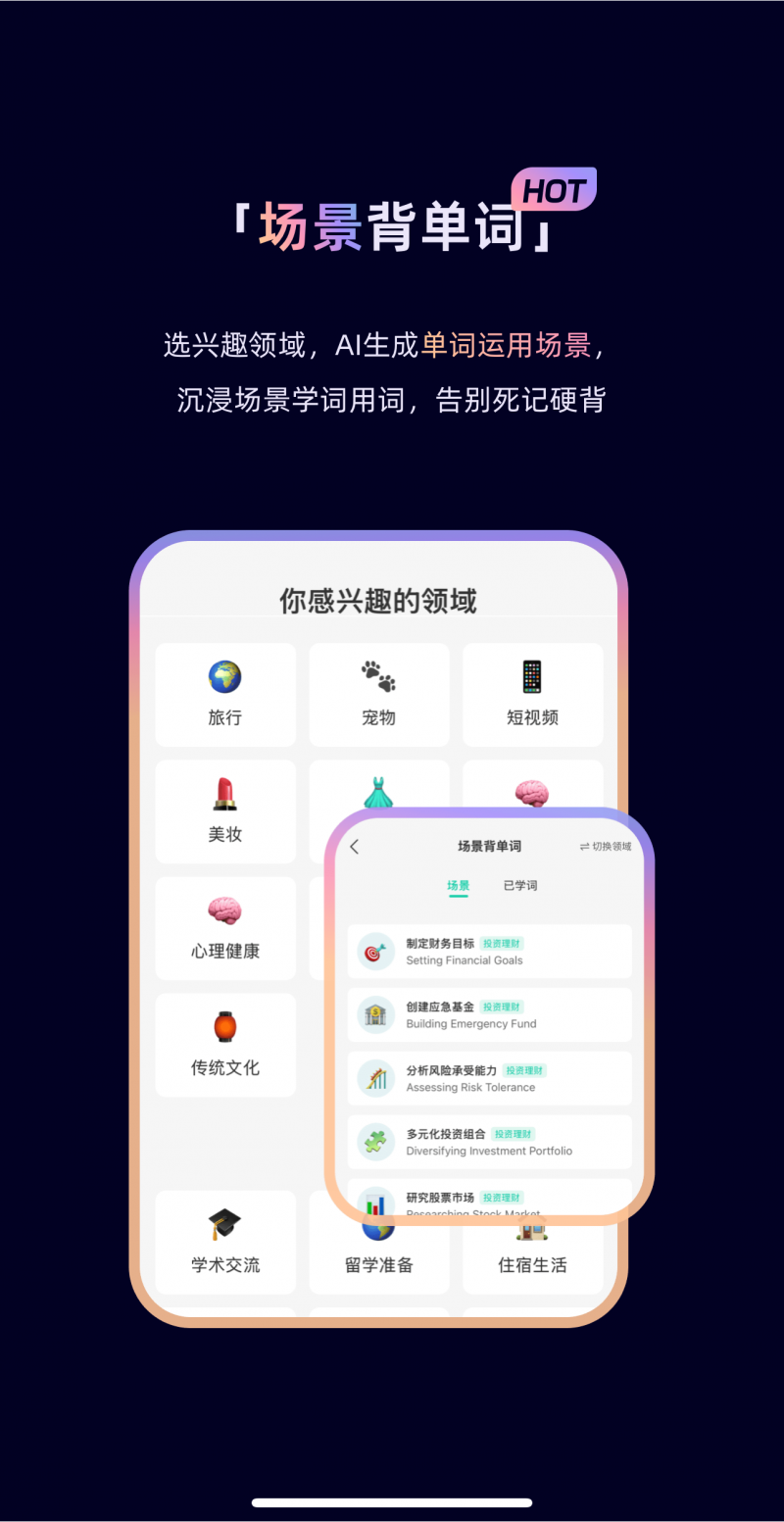 (3)场景化沉浸式背词:学即能用,降低遗忘率