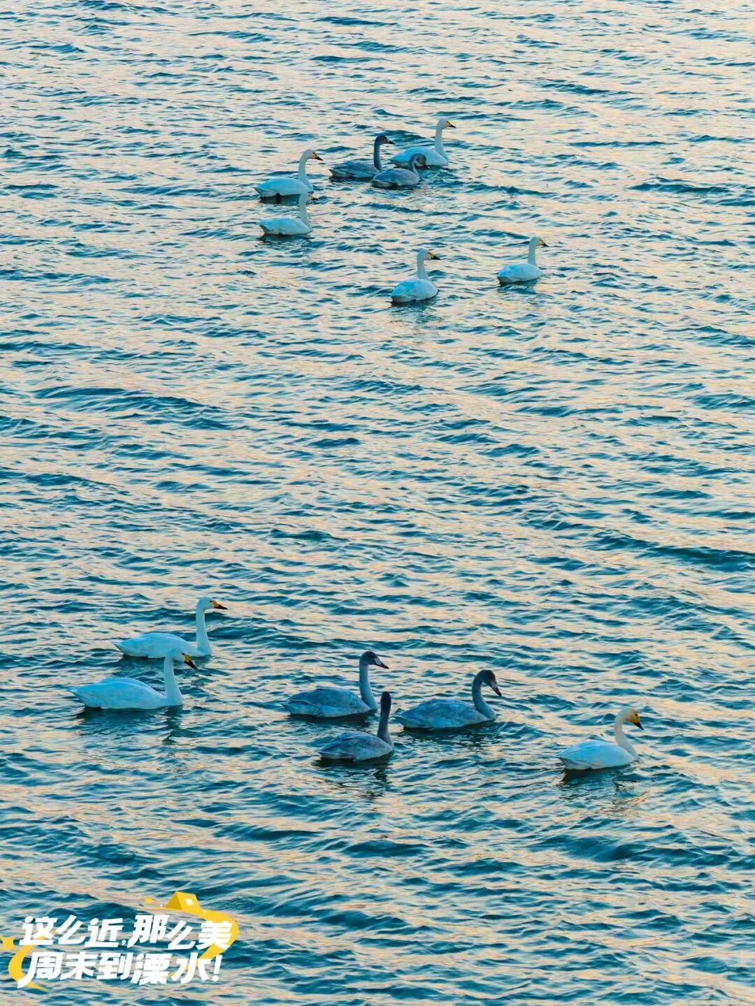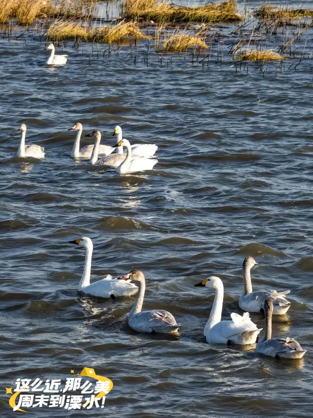 *温馨提示:可远观而不可惊扰。推荐您在岸边取景拉长焦距找角度拍摄天鹅,共同保护天鹅等候鸟的落脚点。