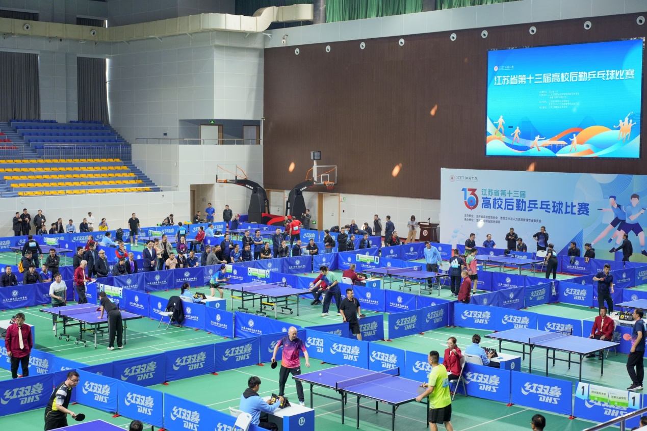 近日,由江苏省高等学校后勤协会思想文化与人力资源管理专业委员会主办、江苏工程职业技术学院承办的江苏省第十三届高校后勤乒乓球比赛在学校南体育馆举行。江苏工院党委书记钱锁梅,省高校后勤协会会长、东南大学副校长黄大卫,江苏省高校后勤协会第三届换届领导小组组长、南京工业大学副校长郭万牛,省高校后勤协会副会长兼秘书长黄在宇以及来自省内52所高校的251名运动员参加了开幕式。开幕式由江苏省高校后勤协会副会长、苏州大学副校长王云杰主持。