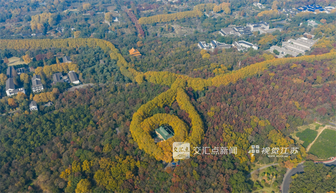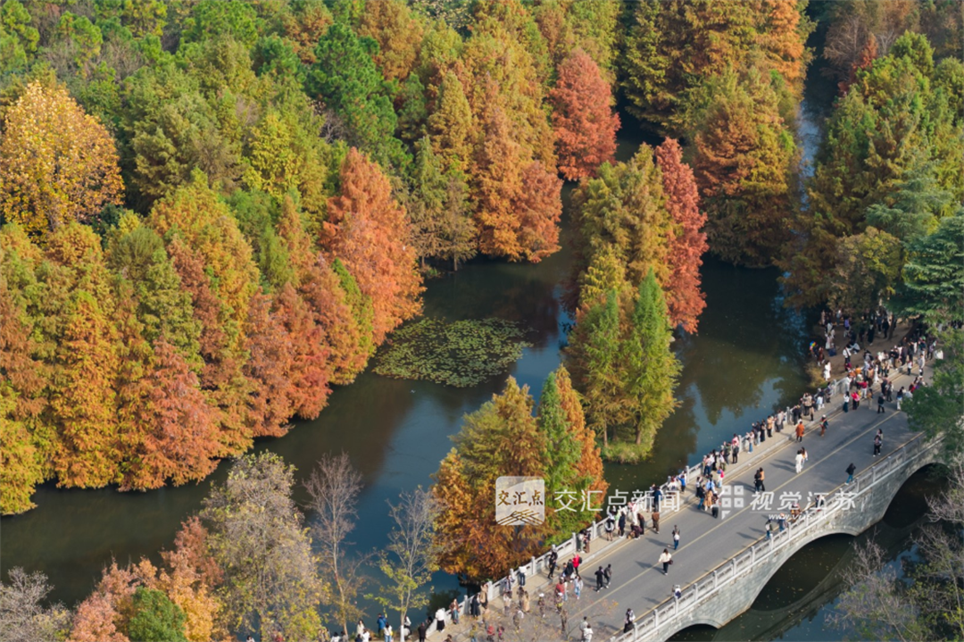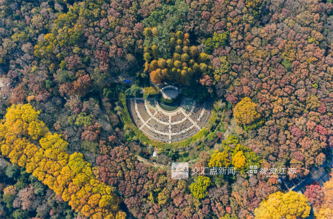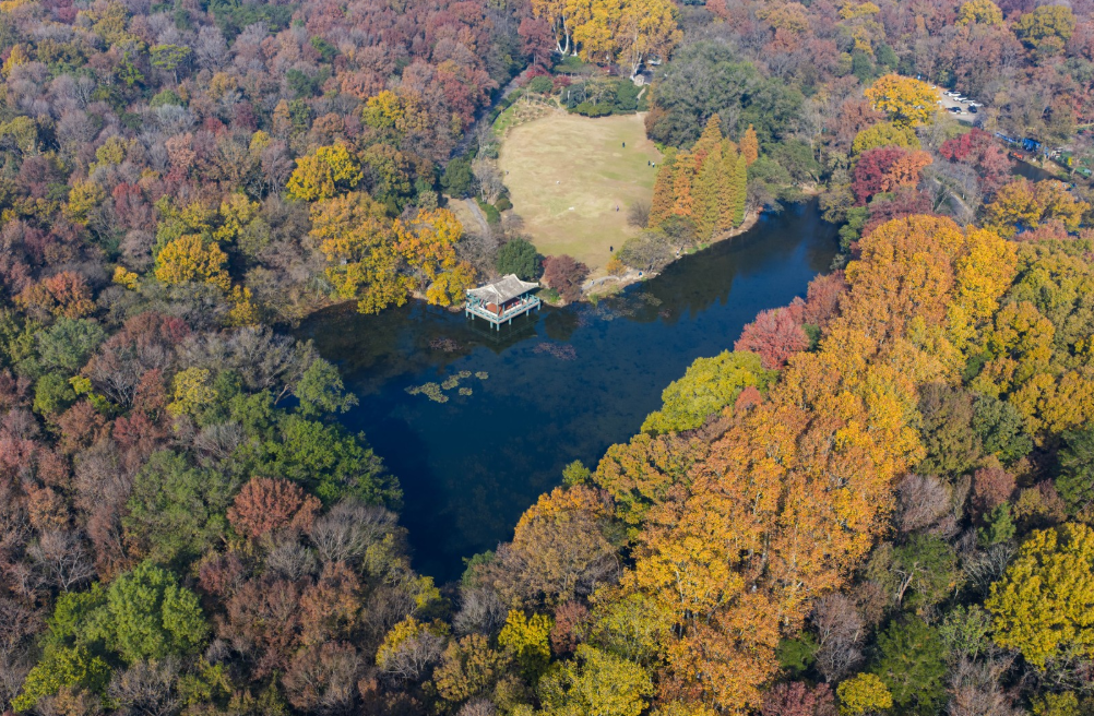 11月24日,时值初冬,南京东郊迎来一年中的最佳观赏季。从空中俯瞰,层林尽染,色彩斑斓,美不胜收,犹如大自然精心铺展的调色盘,吸引众多游客前来赏景休闲。