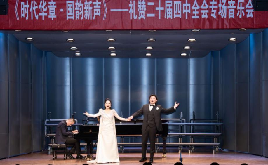 会议期间,在随园音乐厅举办了《时代华章·国韵新声》——礼赞二十届四中全会专场音乐会。南京师范大学党委副书记孙友莲和著名男高音歌唱家戴玉强出席观看。音乐会由南京师范大学音乐学院声乐系与艺术实践中心联合承办,特邀著名男高音歌唱家戴玉强先生担任艺术顾问,著名青年钢琴家武晓锋、张热,歌唱家温震、田吉浩以及由沈金云老师指挥、付镜伊、章荷月伴奏的南师大音乐学院合唱团先后登台亮相,汇聚学院优秀师生同台演绎中外经典与时代新作,紧扣“数智赋能·集群协同”主题,集中呈现了学院的教学成果与艺术高度,以鲜明的中国气派与时代精神,展现师生风貌,见证了南师力量。
