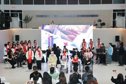 影像的余温未散,多加志愿者与工作人员代表已在现场深情唱响这首歌曲。此刻,现场的歌声与病房画面交融,仿佛将远方的陪伴带到了现场,让爱的力量在时空中传递,为活动开启了温暖动人的序幕。