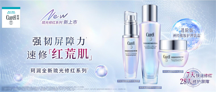 卸妆步骤完成后,便进入了冬季护肤的关键环节。寒风凛冽,空气干燥,正是“红荒肌”的高发期——肌肤不仅容易干燥,更时常面临泛红与敏感的困扰。单纯的补水已远远不够,肌肤更需要的是深层的滋养修护与日复一日的稳定呵护,以构筑一道“坚固的肌肤屏障”,安然度过寒冬。珂润轻龄弹润“琉光修红*3”系列,专为呵护红荒肌人群设计,助力强韧肌肤屏障力,帮助攻克换季“干、红、纹”。