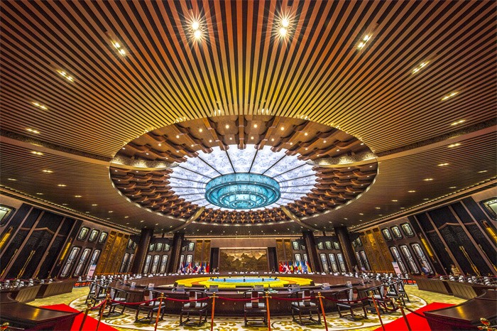 当杭州因2016年G20峰会站上世界舞台,朱家铜艺再次承担起向世界展示中国铜艺的文化使命。在峰会主会场,朱家铜艺打造了多项标志性铜艺工程:会议厅的流线型紫铜连心斗拱、迎宾区的铜艺大门、以及遍布场馆的铜装饰,无一不体现着中国传统的待客之道与现代美学的融合。这些作品,既是杭州支持本土品牌参与国际盛事的典范,也让世界通过铜艺之美,看见当代中国工匠的精神与智慧。