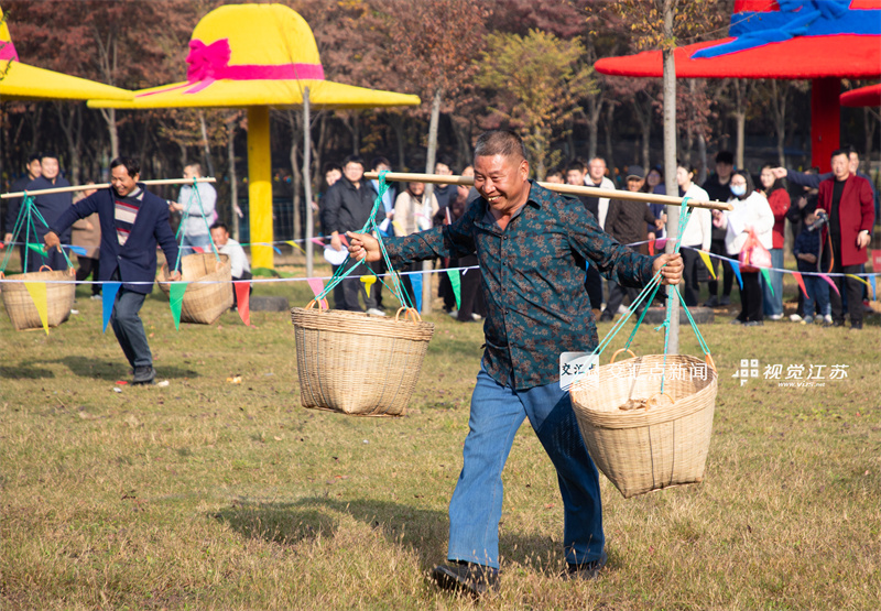 11月15日,泗洪县梅花镇举办农民趣味运动会,约200名党员群众齐聚一堂,参加充满农耕趣味的“扁担接力跑”“轮胎滚滚赛”“南瓜保龄球”等比赛。刘烨 摄 视觉江苏网供图