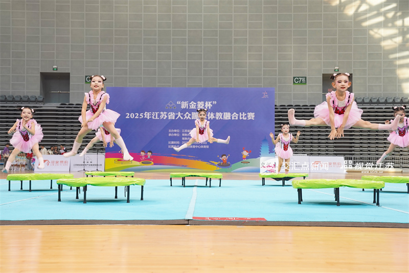 11月23日,2025年江苏省大众蹦床体教融合比赛在常熟市体育中心开赛。本次比赛吸引来自全省各地的超过200名小运动员同场竞技,展现良好的身体素质和朝气蓬勃的精神风貌。张轩硕 摄 视觉江苏网供图