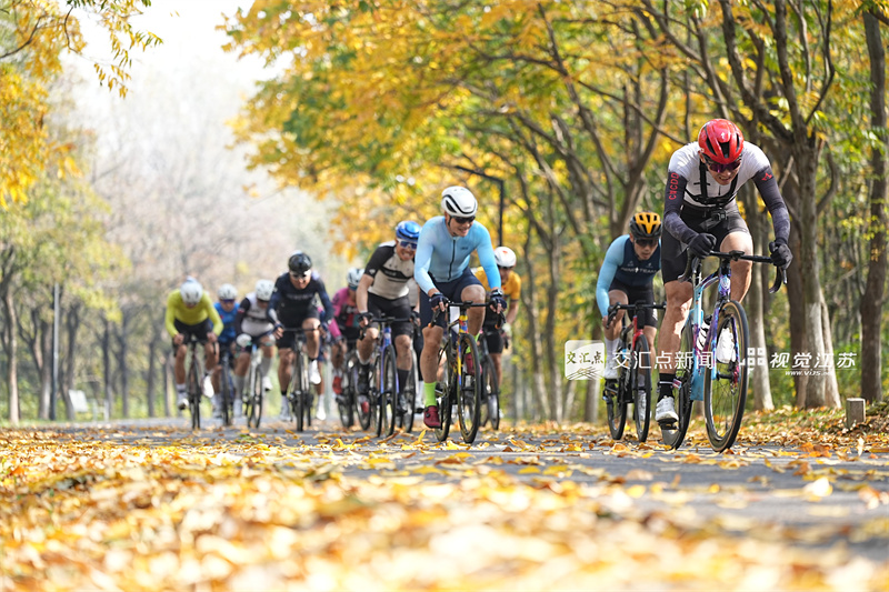 11月16日,江苏省自行车俱乐部联赛暨2025长三角自行车穿越赛(宿迁站)在三台山国家森林公园鸣枪开赛。赛事依托公园“林、湖、田”生态空间,设置多组别绕圈赛,吸引长三角多地骑行爱好者参加。程天翔 摄 视觉江苏网供图
