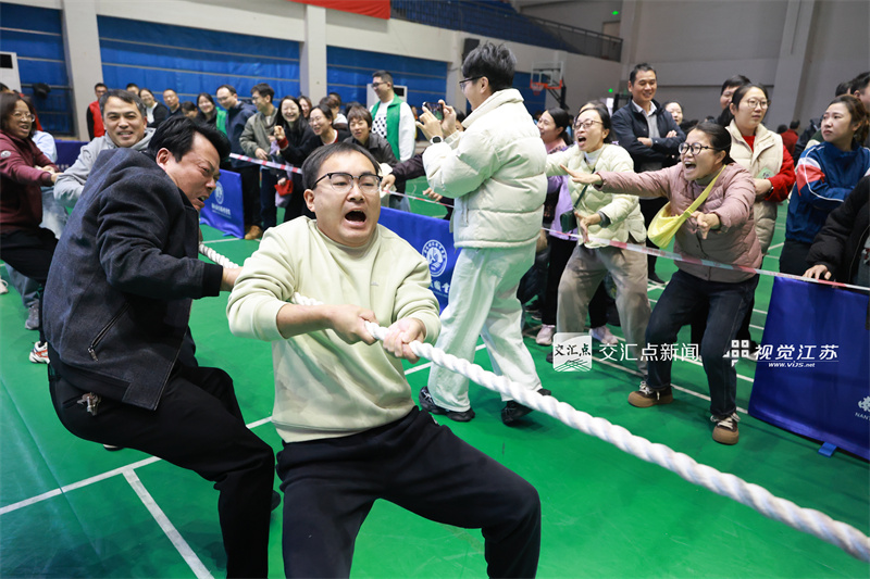 11月23日,南通市崇川区学田街道第十四届趣味运动会开幕,设置拔河、足球射门等项目,250多名居民和职工参加比赛。钱咸华 摄 视觉江苏网供图