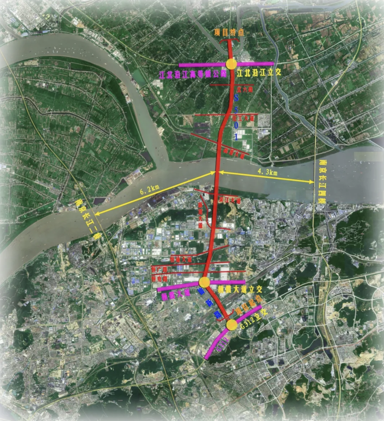 该项目由南京市交通运输局行业监管,南京市公共工程建设中心负责建设,全长约13.17公里,主线设计时速80公里,双向六车道,其中跨江主桥为单跨吊钢箱梁悬索桥,主跨达1760米,建成后即成为“中国第一、世界第三”。