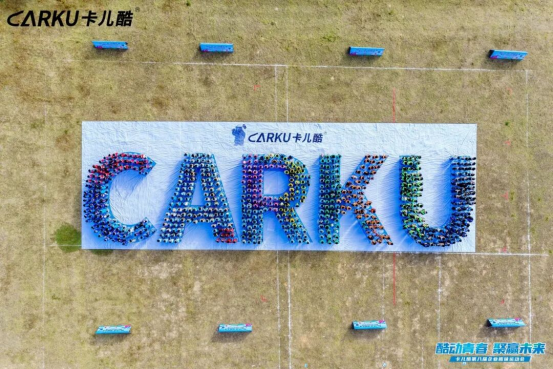 随后,大家踏上幕布,摆好CARKU造型,无人机记录下这一团结整齐的瞬间。