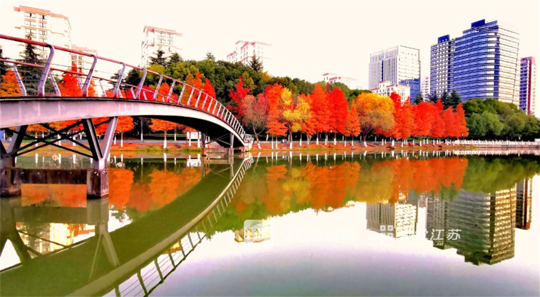 (特约摄影 杨溢 07:52摄 08:51上线)11月27日,无锡经开区菱湖大道旁的一处景观带枫叶红艳,初冬美景如画。