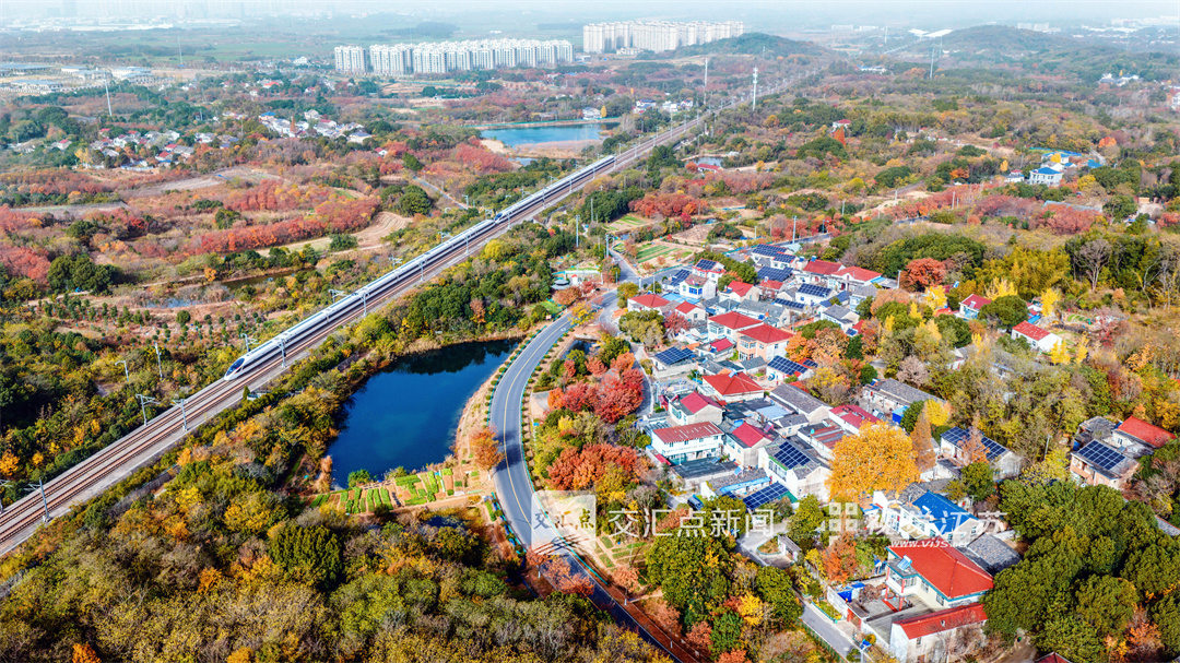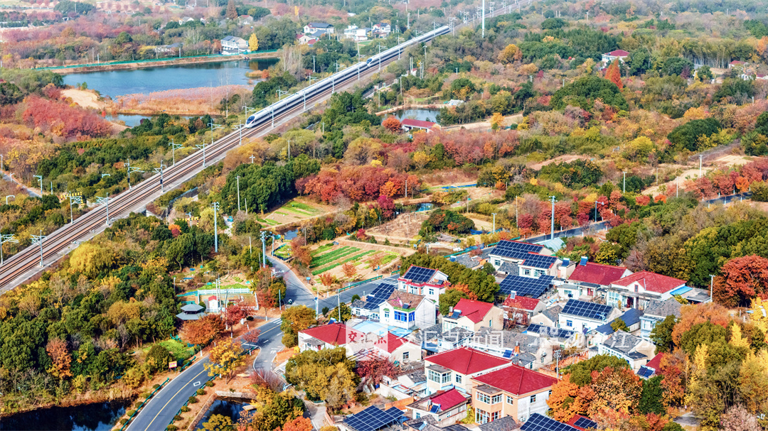 (特约摄影 朱红生 09:45摄 11:16上线)11月27日,南京市溧水区永阳街道东山村色彩斑斓,穿驶的宁杭高铁动车与四好农村公路、生态村庄环境相互映衬,构成一幅绚丽多彩的冬日画卷,美不胜收。