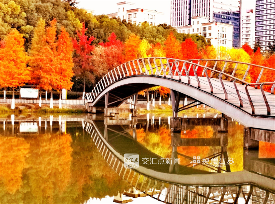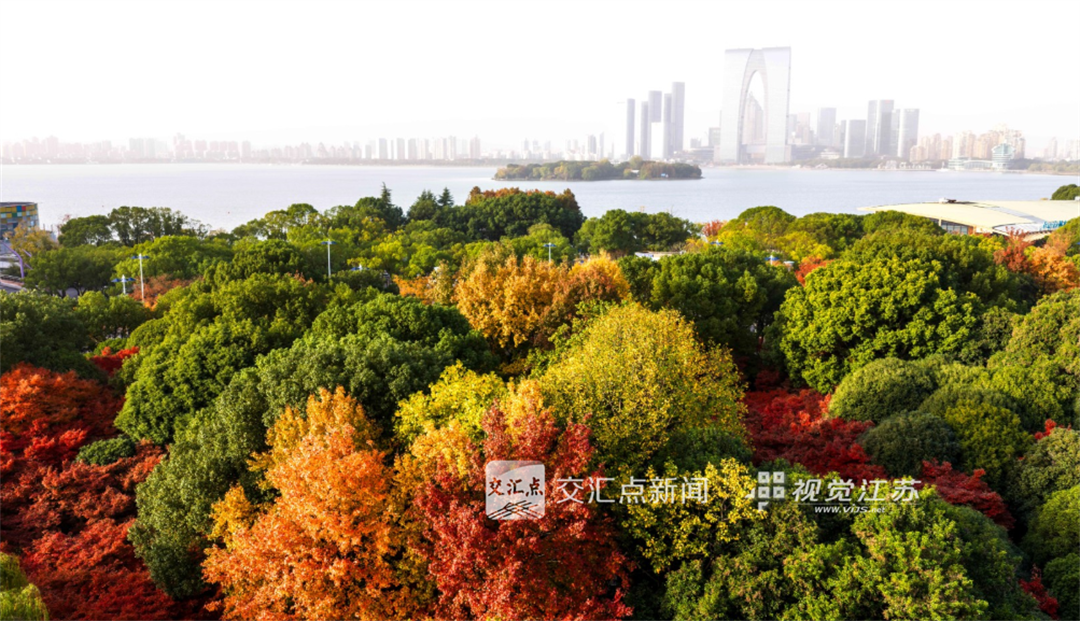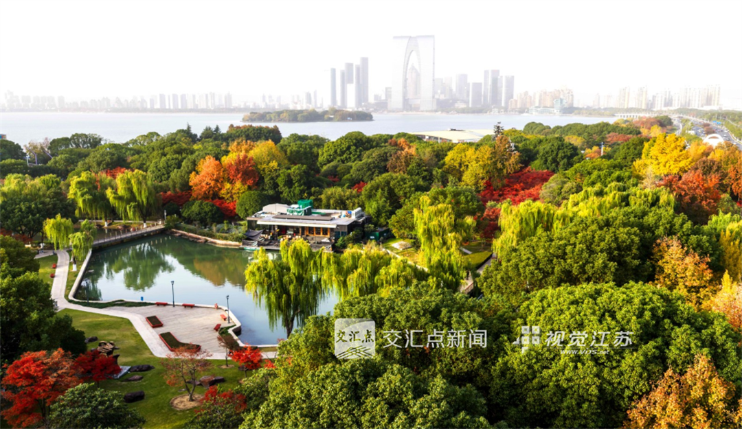 (特约摄影 孔繁立 07:24摄 10:35上线)11月27日,苏州工业园区金鸡湖,水碧天蓝,桃花岛五彩斑斓,层林尽染,初冬时节尽显园区生态美景。