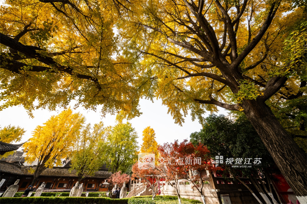 (特约摄影 董海军 11:41摄 14:04上线)11月27日,南京夫子庙大成殿的古银杏进入最佳观赏期。景区内市民游客络绎不绝,纷纷拿起手机定格古建与银杏同框的绝美瞬间,勾勒出一幅兼具人文底蕴与自然之美的独特画卷。