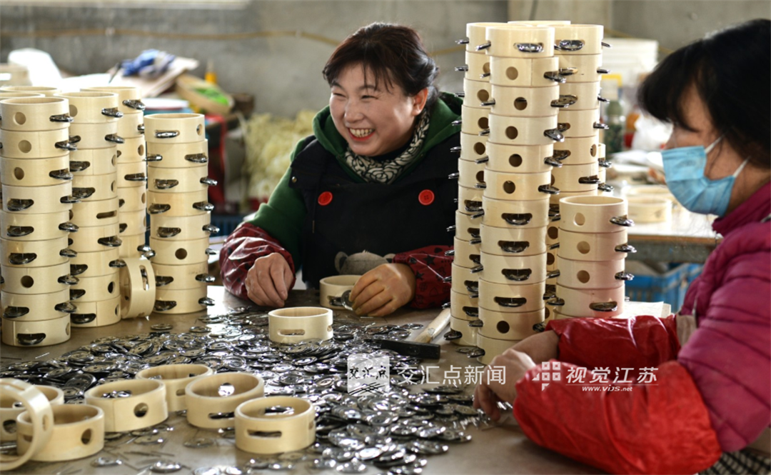 (特约摄影 刘彬 08:21摄 09:10上线)11月27日,淮安市洪泽区东双沟镇青云社区农家嫂在为浙江义乌一商家赶制传统“拨浪鼓”玩具,冬闲时节增收忙。