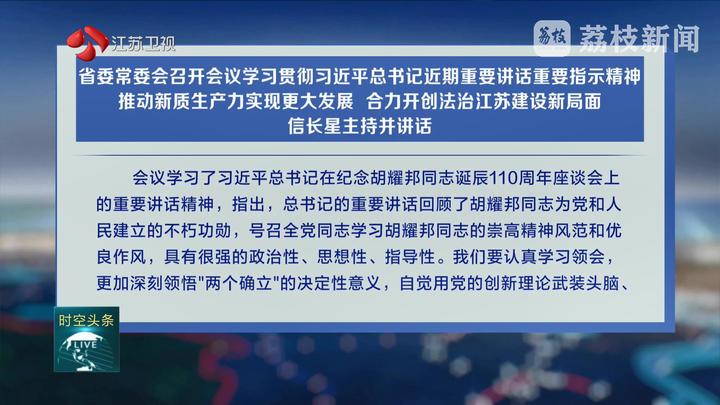 江苏省委常委会召开会议学习贯彻习近平总书记近期重要讲话重要指示精神 推动新质生产力实现更大发展 合力开创法治江苏建设新局面 信长星主持并讲话