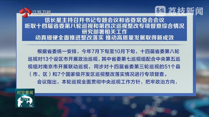 根据省委统一安排,今年7月下旬至10月下旬,十四届省委第八轮巡视对各设区市开展政治巡视,其中省委第七巡视组配合中央第五巡视组对南京市开展联动巡视,同步对十四届省委第三轮巡视的51个县(市、区)和7个国家级开发区巡视整改落实情况进行专项督查。