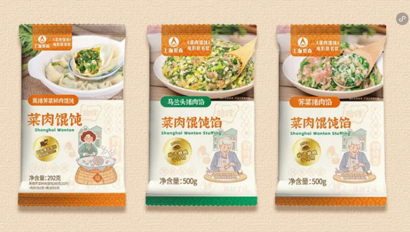 作为活动重头戏,上海爱森携电影联名款菜肉馄饨惊喜亮相,产品甄选上海爱森冷鲜猪腿肉搭配优质荠菜,还原地道沪上家常味,成为连接大众与上海城市记忆的媒介。此次推出的联名产品包括黑猪荠菜鲜肉馄饨、马兰头猪肉馅馄饨馅、荠菜猪肉馅馄饨馅,消费者可在活动现场直接选购带回家。此外,在一楼咖啡厅购买咖啡,还有机会品尝到这款联名款菜肉馄饨,让海派风味与日常消费场景巧妙融合。
