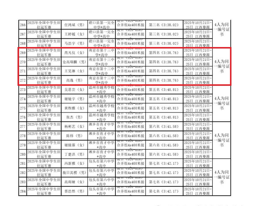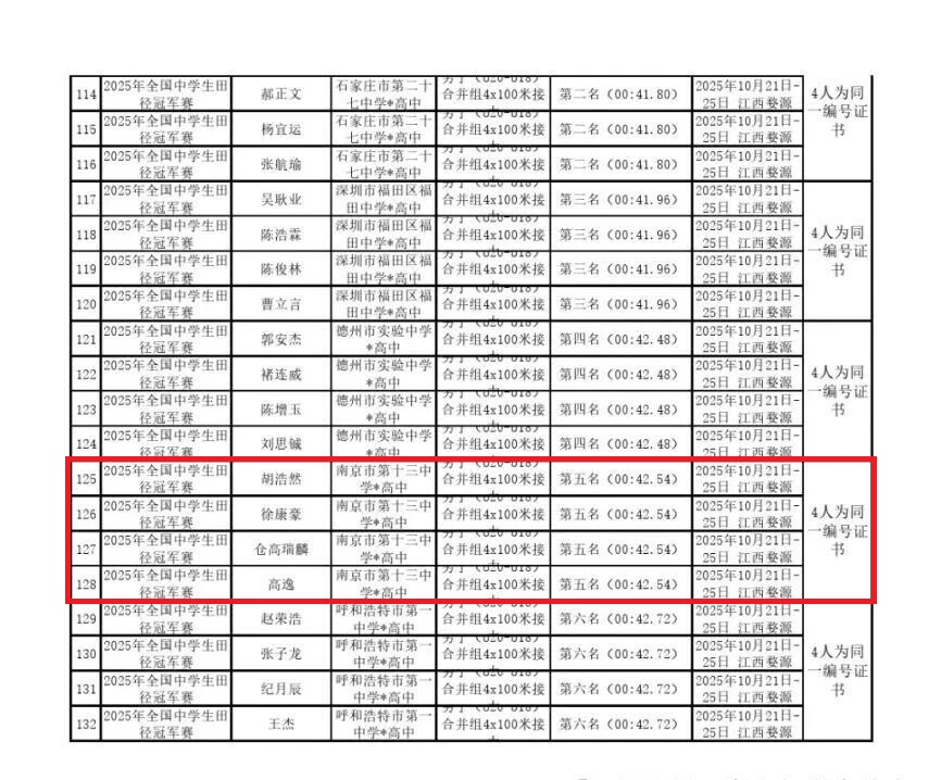 2025年全国中学生田径冠军赛成绩证书(接力)信息公示(江苏有关)