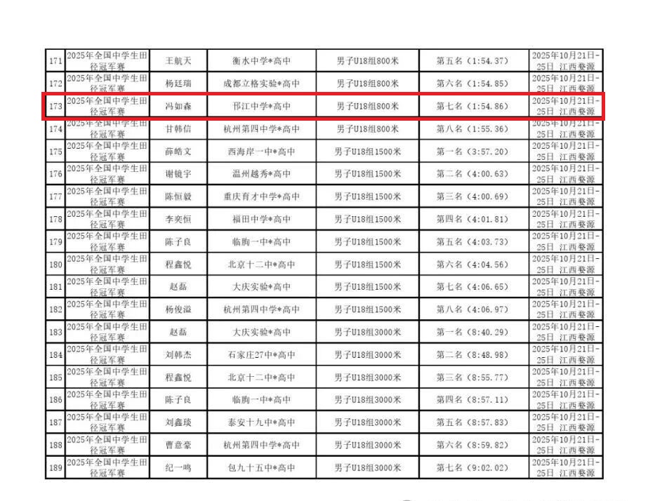 U 系列田径赛事中,新海高级中学的李其炫在男子 100 米赛道上,也以10.75 秒的优异成绩冲线,远超 10.88 秒的国家一级运动员标准,用实力书写青春答卷。