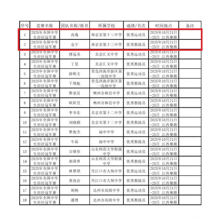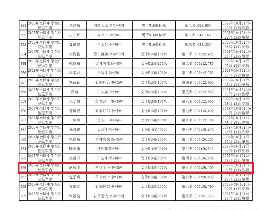 2025年全国中学生田径冠军赛荣誉证书信息公示(江苏相关)