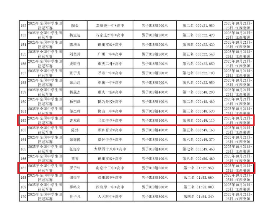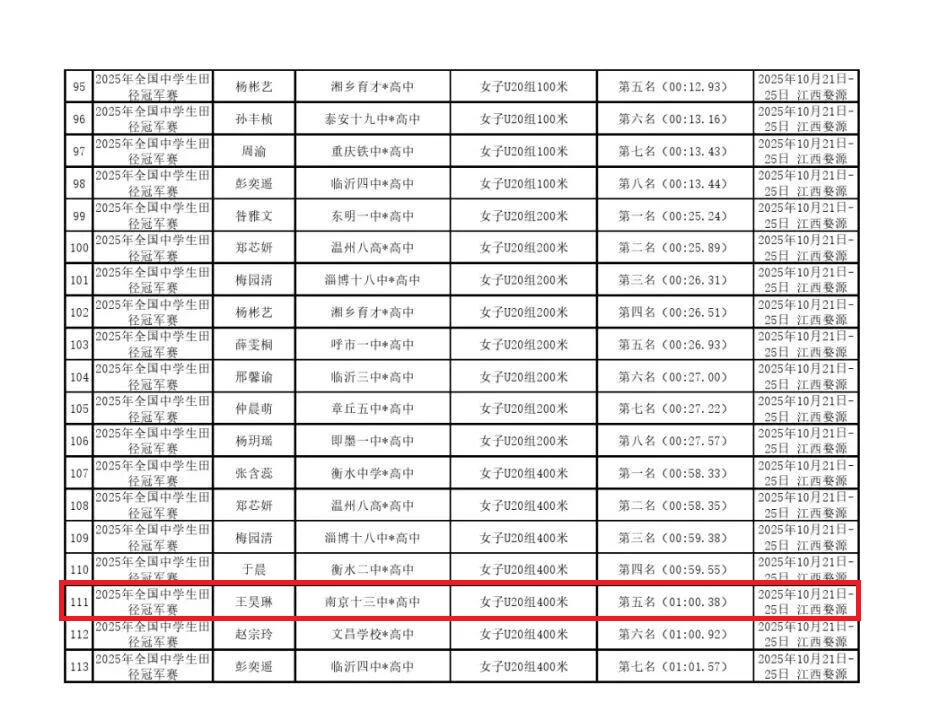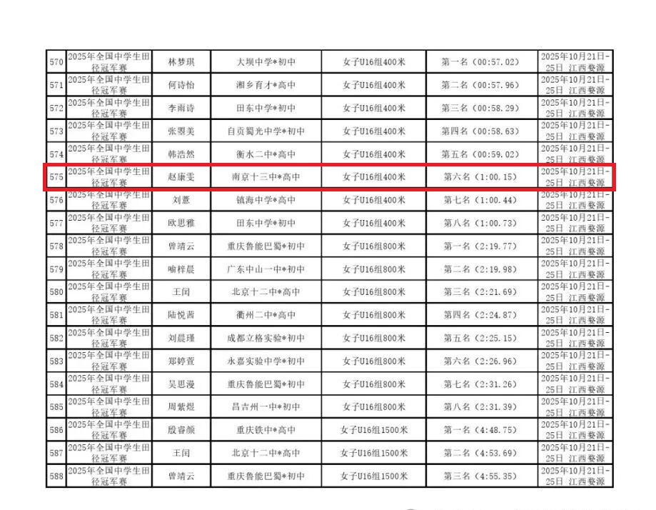 2025年全国中学生田径冠军赛成绩证书(个人)信息公示(江苏有关)