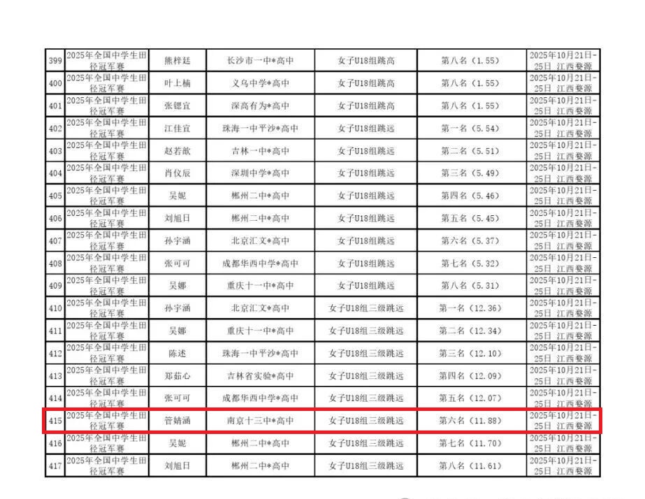交汇点讯 记者了解到,在日前结束的2025年全国中学生田径冠军赛上,江苏不少学子斩获佳绩。