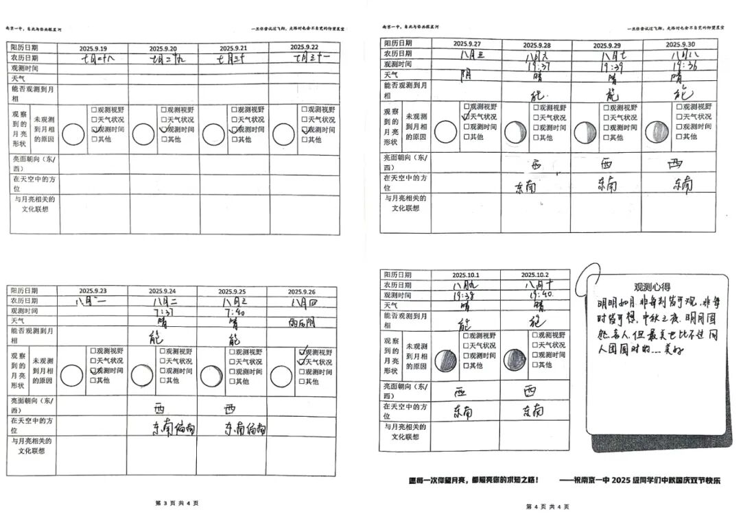 夜幕下的观测现场,没有死记硬背的知识点,只有头顶清晰的月轮、记录单上细致的标注、师生间热烈的讨论。课堂上抽象的原理,在一次次抬眼观测、一次次记录对比中变得具象可感;原来需要反复背诵的“上上上西西”口诀,变成了同学们亲手验证的发现。