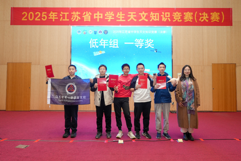 交汇点讯 近日,2025年江苏省中学生天文知识竞赛决赛在南京市第一中学举行。来自全省的115名优秀中学生天文爱好者齐聚赛场,历经理论赛与观测赛的激烈角逐,竞赛组委会依据选手综合成绩及竞赛规则,最终确定低年组、高年组获奖名单:共评选出一等奖13名、二等奖35名、三等奖 67名,同时评选优秀指导老师18名、优秀组织单位38家。