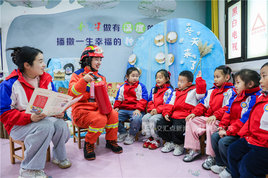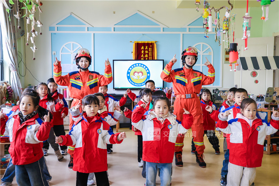 (特约摄影 朱路杰 10:18摄 12:53上线)11月28日,盐城市“蓝焰轻骑兵”宣传队走进红果果幼儿园,开展安全科普教育、讲解灭火器材和用火用电注意事项,并现场教学“消防手势操”。让师生们在欢乐中提升火灾防范意识和应急自救能力。