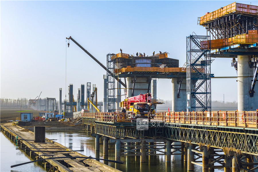 (特约摄影 周永 08:31摄 13:13上线)11月28日,在沭阳县境内的连宿高速新沂河大桥段施工现场,建设者们正在各自岗位,进行桥梁桩基施工作业,工程建设有序推进。