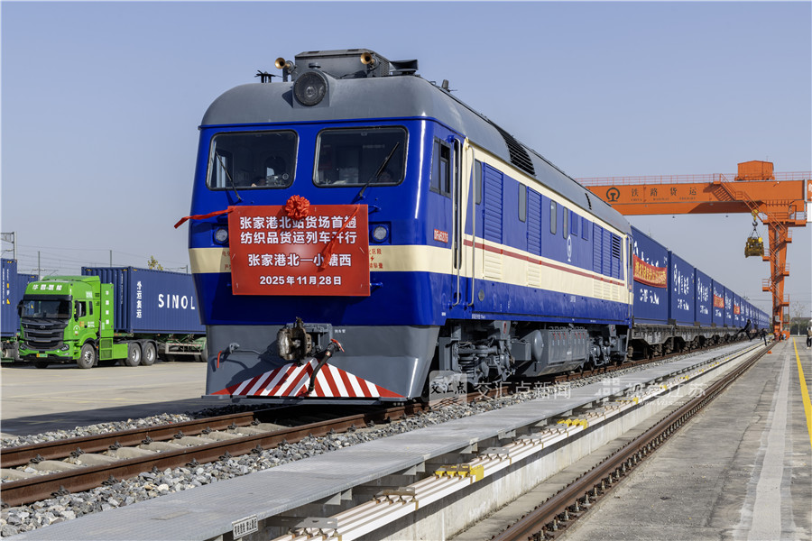 (特约摄影 谢卫东 10:42摄 14:20上线)11月28日上午,首列装载着纺织品等货物的货运列车从张家港北站货场缓缓驶出,开往广东佛山市小塘西站,标志着由港城汽运集团经营的该货场正式投入运营。