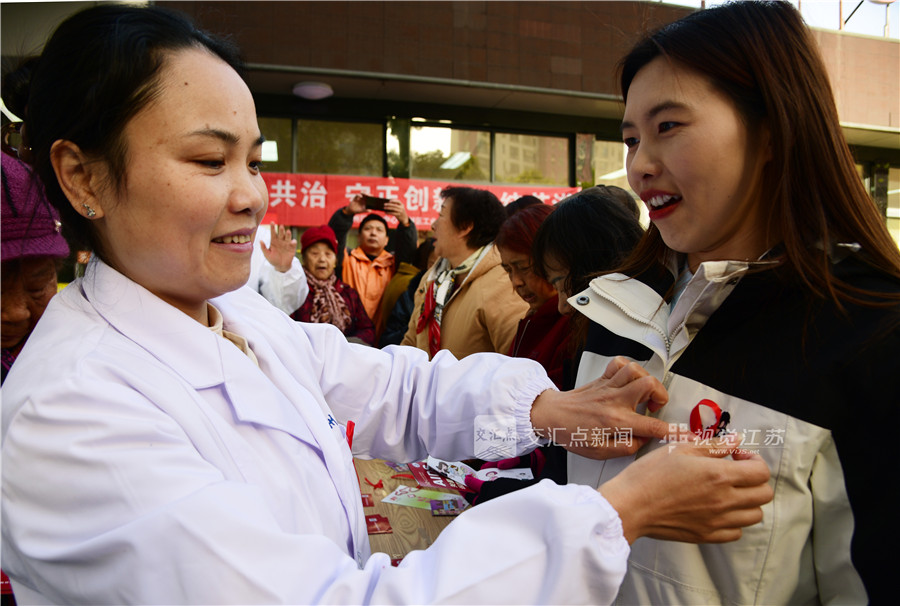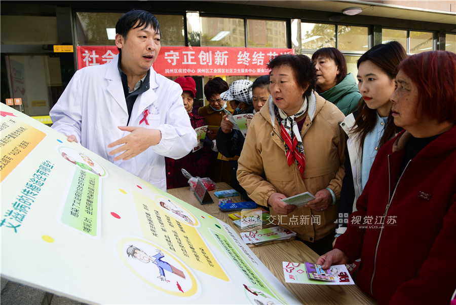 (特约摄影 石玉成 09:53摄 14:06上线)11月28日,镇江市润州区疾控中心和润州区工业园区社区卫生服务中心医务人员来到和平路街道新金江社区,开展“共防艾滋 乐享健康”活动,向居民宣讲艾滋病防范知识,倡导健康文明生活方式,迎接世界艾滋病日的到来。