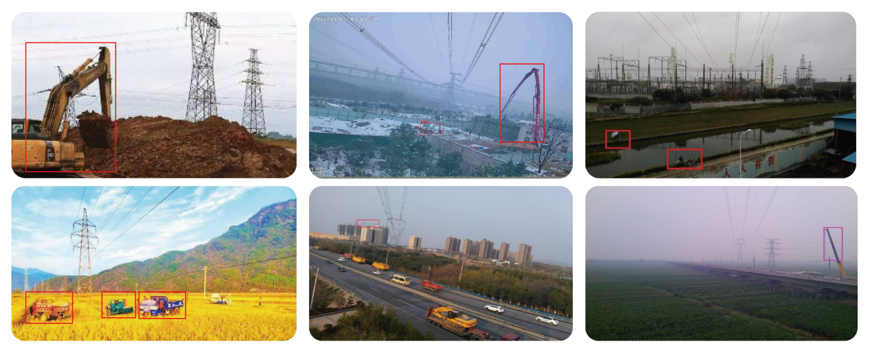 依托先进的人工智能视觉技术,该系统构建起全方位的线路安全防护体系,三大核心功能守护电网安全。在防外力破坏方面,系统可精准识别渣土车、水泥泵车、吊车、挖掘机等各类施工机械,同时对人员闯入、恶意破坏等异常行为进行实时监测,一旦发现风险立即触发分级预警并上传至监控平台,实现“秒级响应、精准定位”。