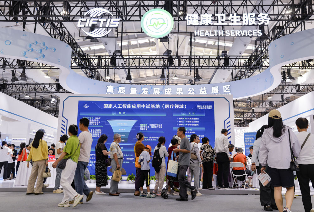 9月14日,人们在2025年服贸会健康卫生服务专题展上参观、体验。(新华社记者 徐钦 摄)