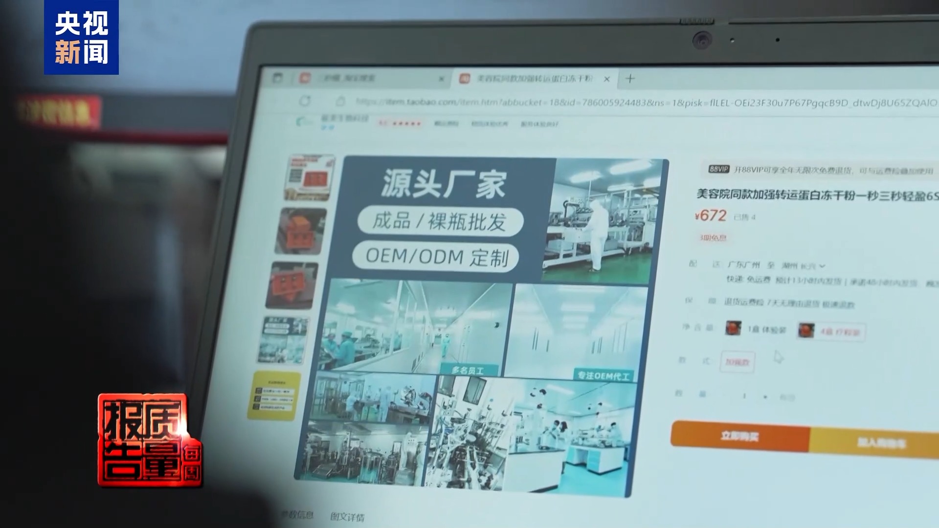 上海市公安局杨浦分局经济犯罪侦查支队民警 胡金磊:犯罪嫌疑人代某伙同高某在广州举办的化妆品博览会,结识了位于广州地区的一个上家,通过十五元到二十几元不等的价格购入“加强转运蛋白”这个减肥产品。