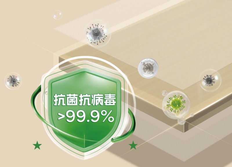 千山板材以硬核实力,为消费者构建环保屏障。采用无醛添加工艺,产品具备净醛、抗菌、抗病毒三重防护,甲醛净化效率达63%,对大肠杆菌(AS1.90)和金黄色葡萄球菌(AS1.89)的抗(细)菌率为99.92%和99.99%,对甲型流感病毒H1N1的抗病毒活性率>99.9%。