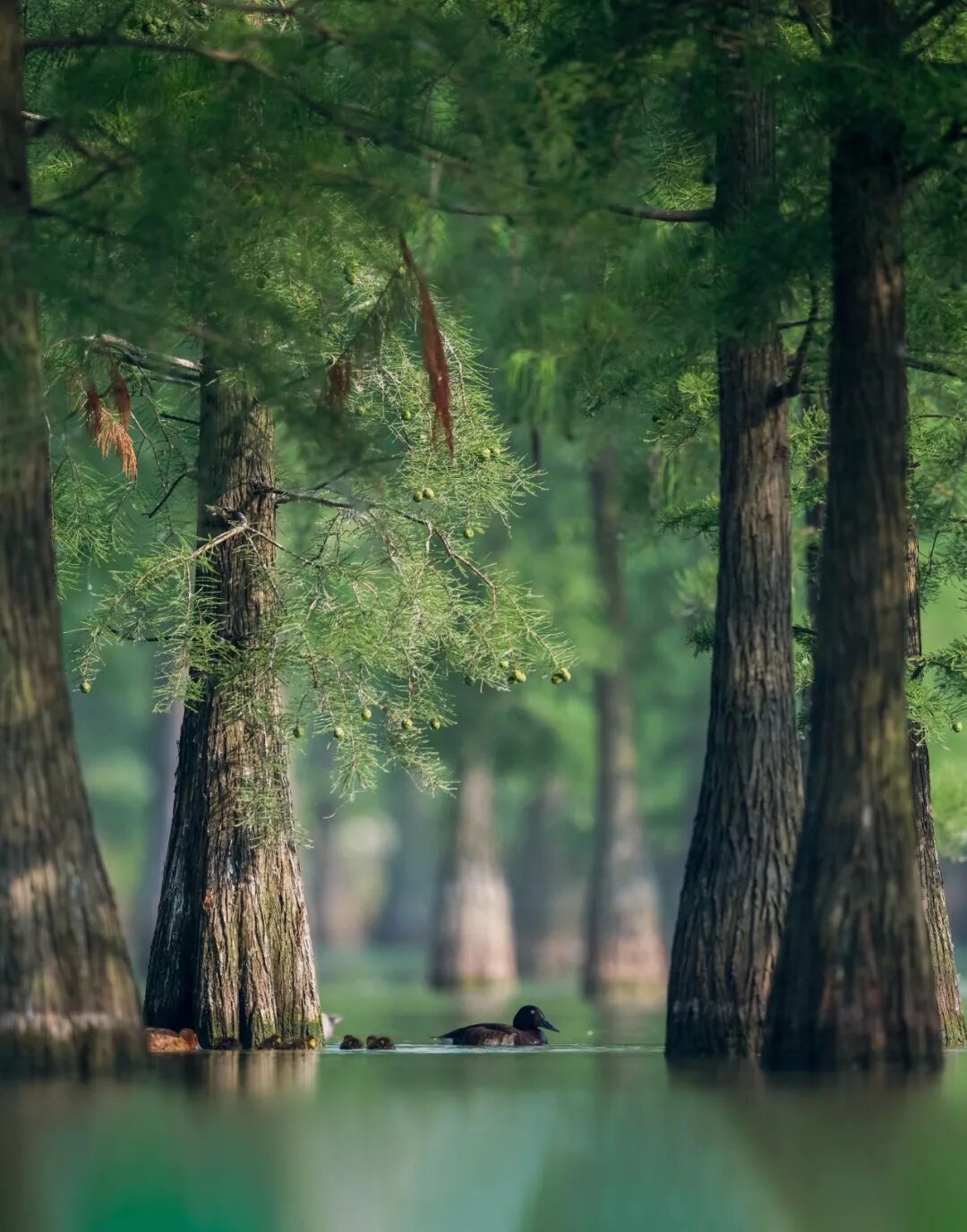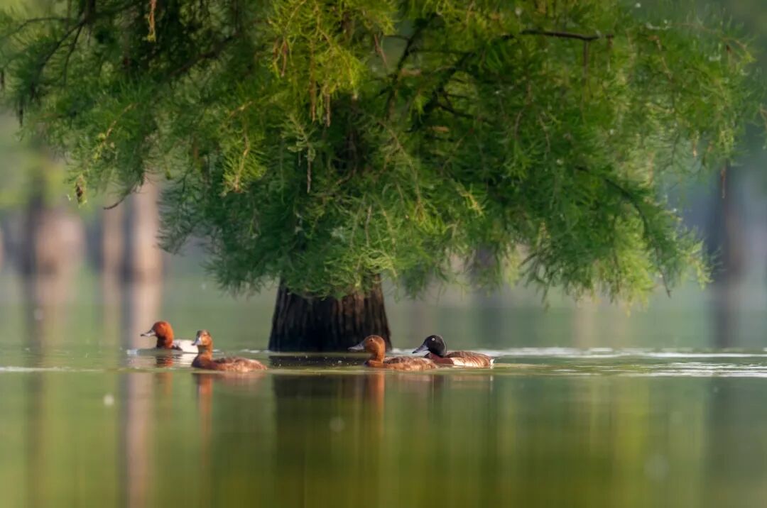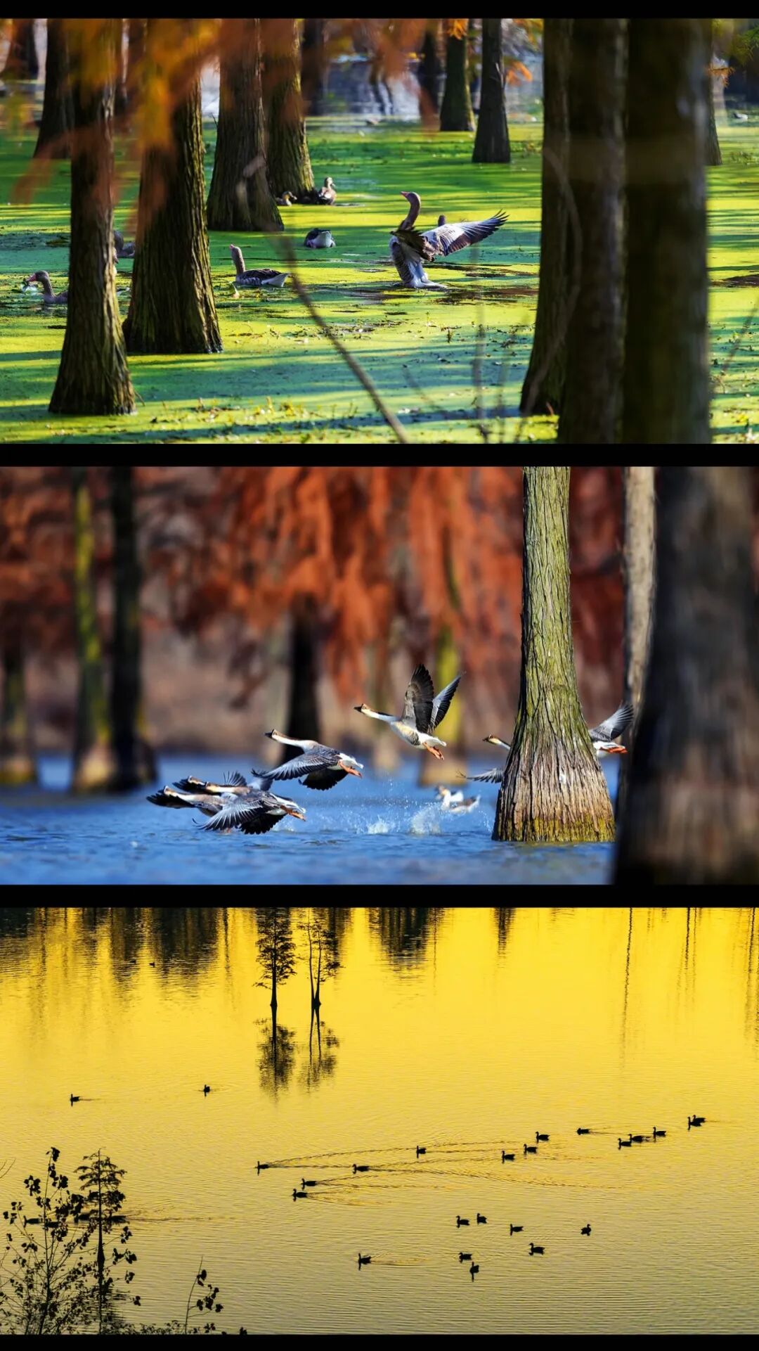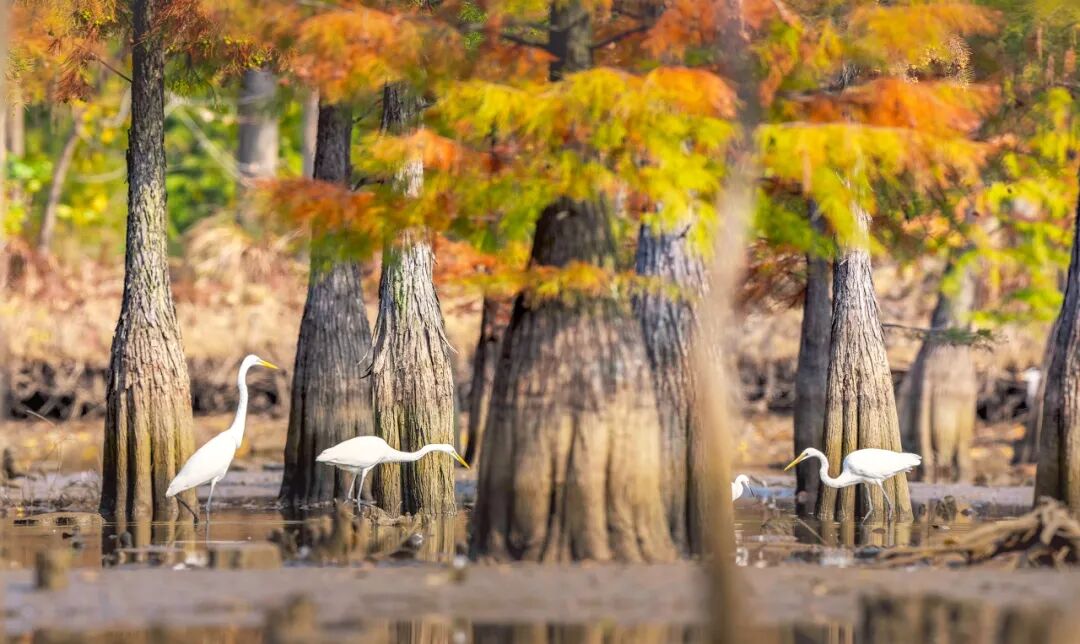 比池杉更灵动的,是这片湿地的“主人”们——上百种鸟类来到这里,让池杉湖成了热闹又温馨的“鸟类小镇”。