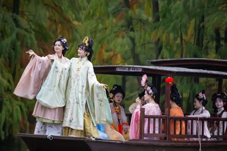清晨的薄雾给池杉披上轻纱,拍出来的照片自带“神仙滤镜”;正午光影斑驳,池杉的影子在船板上晃悠;黄昏时分,飞鸟掠过水面,惊起的涟漪与池杉交相辉映。