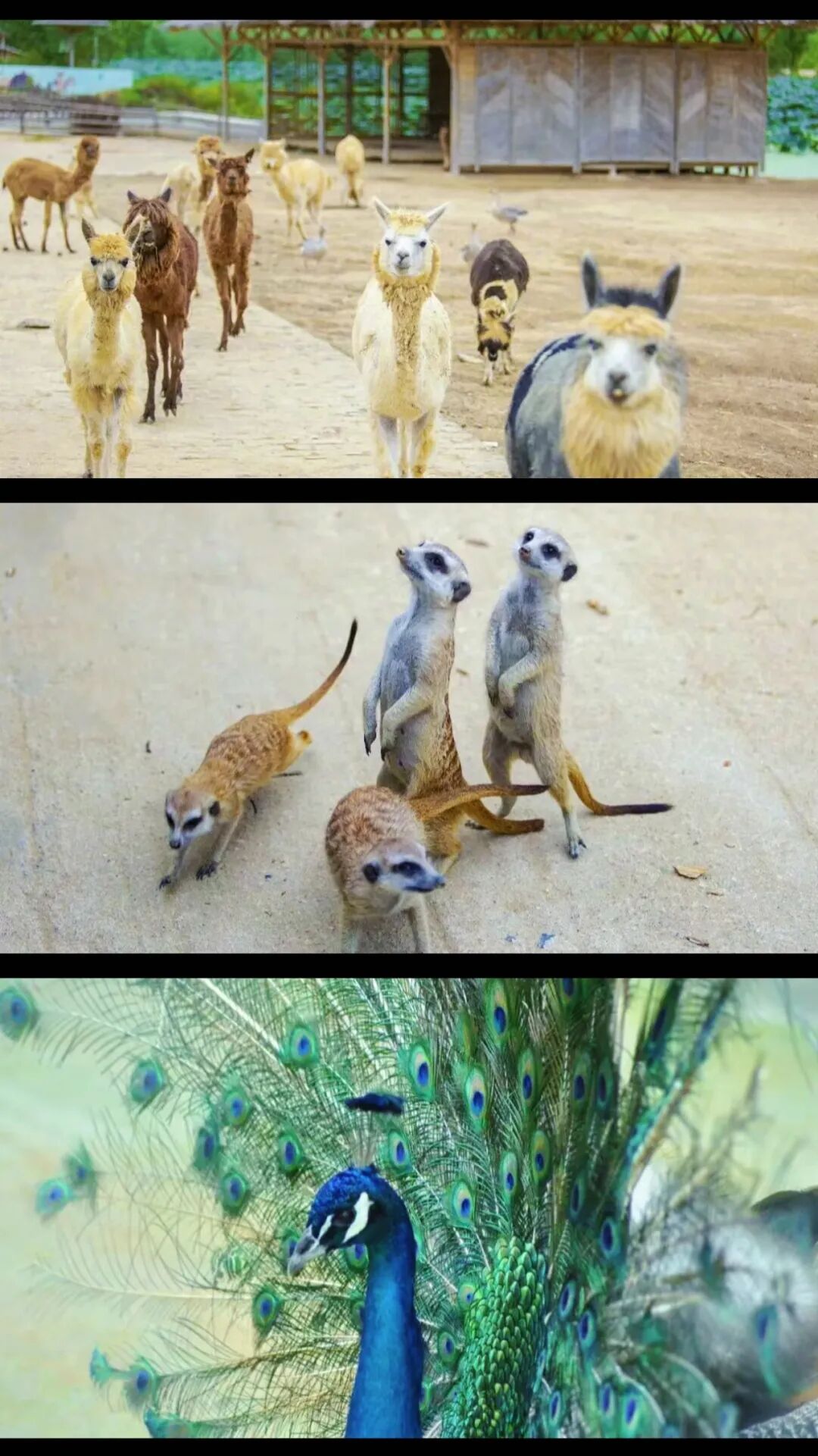 羊驼探头讨食,梅花鹿眨着温顺的眼睛,狐獴排着队“放哨”,孔雀时不时开屏比美,青褐色的扬子鳄静卧浅滩,与远处的火红的池杉、飞鸟构成一幅治愈的画面。