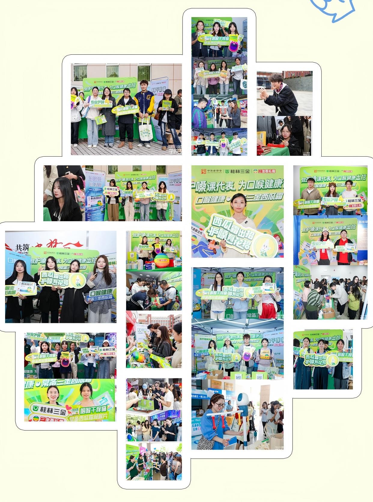 三金西瓜霜精心打造的互动展区,在每所巡讲高校都成了人气打卡热点。高颜值的主题设计搭配趣味互动游戏,很快吸引无数学子驻足参与,大家在轻松的游戏互动中近距离感受三金西瓜霜的品牌魅力,现场打卡分享还能赢取定制品牌周边。愉悦的互动氛围里,“守护口喉健康”的理念也自然融入学子的校园日常与生活点滴。