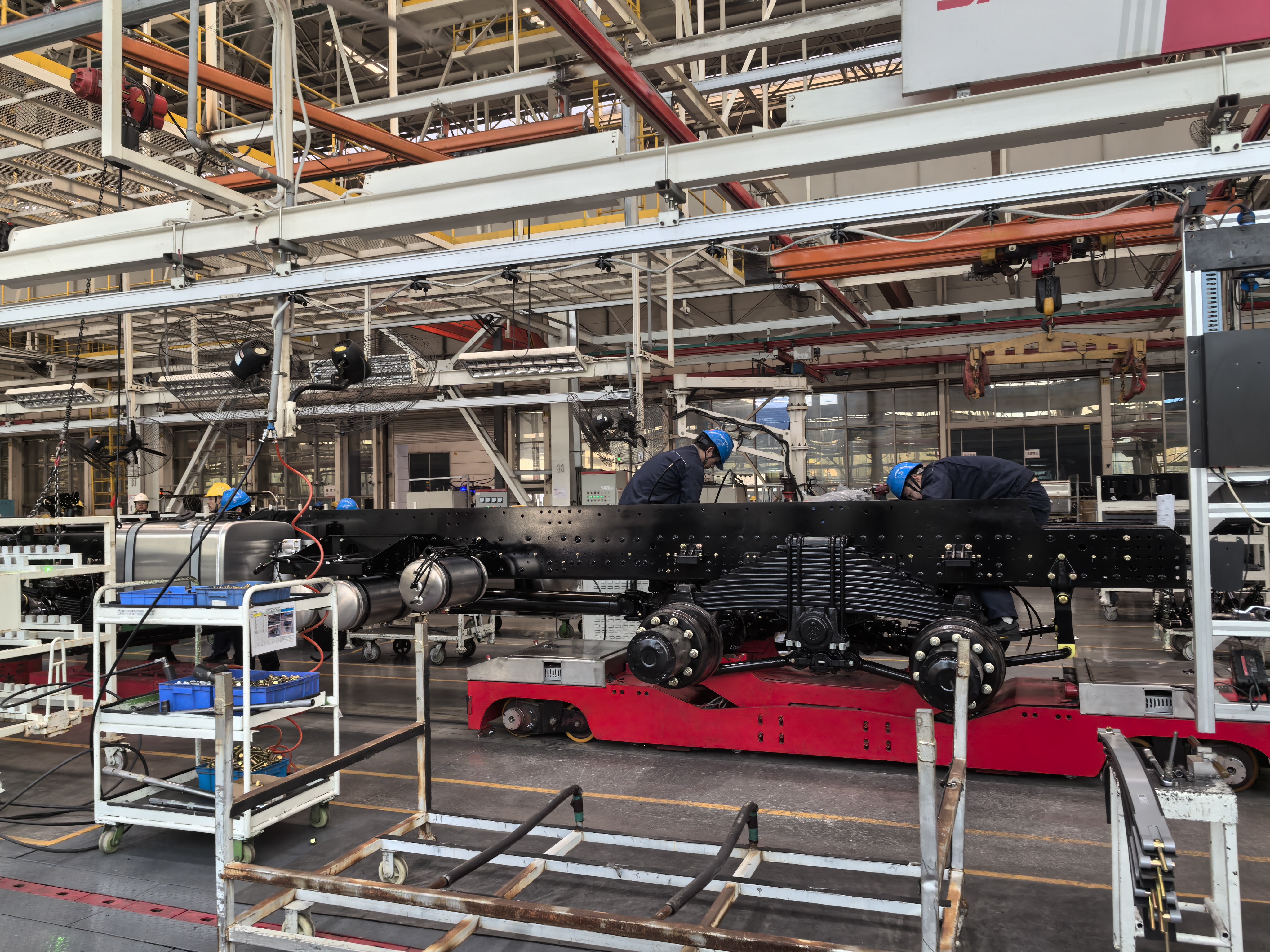 记者团走进全自动化总装车间,近距离感受“邵阳智造”的独特魅力:机械臂精准地抓取着零部件,每一个动作都精准利落;智能传送带载着物料有序流转,衔接无缝;AGV机器人灵活穿梭于各个工位之间,忙而不乱。从零部件组装到整车成型,一台定制化工程车的诞生仅需18分钟。